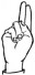 На ћирилици написано ЕЛЕНА ЛАЛОВИЋ састоји се из 12 слова [?]. Исписано ћириличном једноручном азбуком за глувонеме: